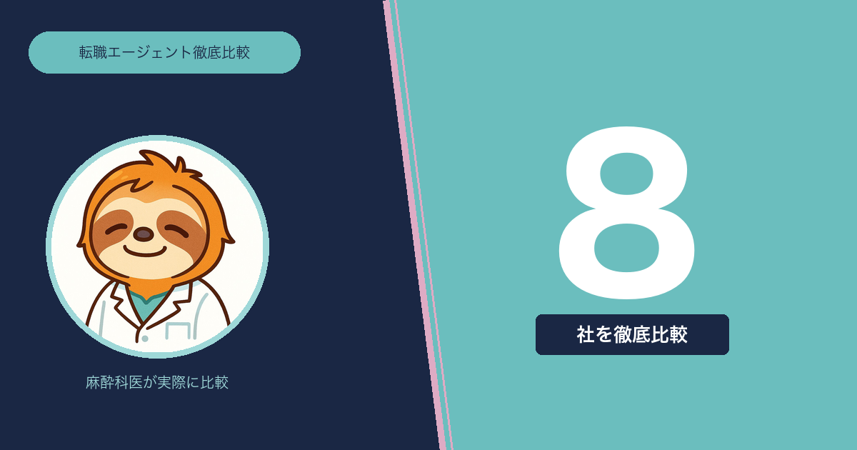 この記事では、僕が実際に使ったり調べたりした8社のエージェントを、麻酔科医の目線で比較します。ランキング形式ではなく「あなたの目的に合ったエージェントはどれか」がわかる構成にしました。
